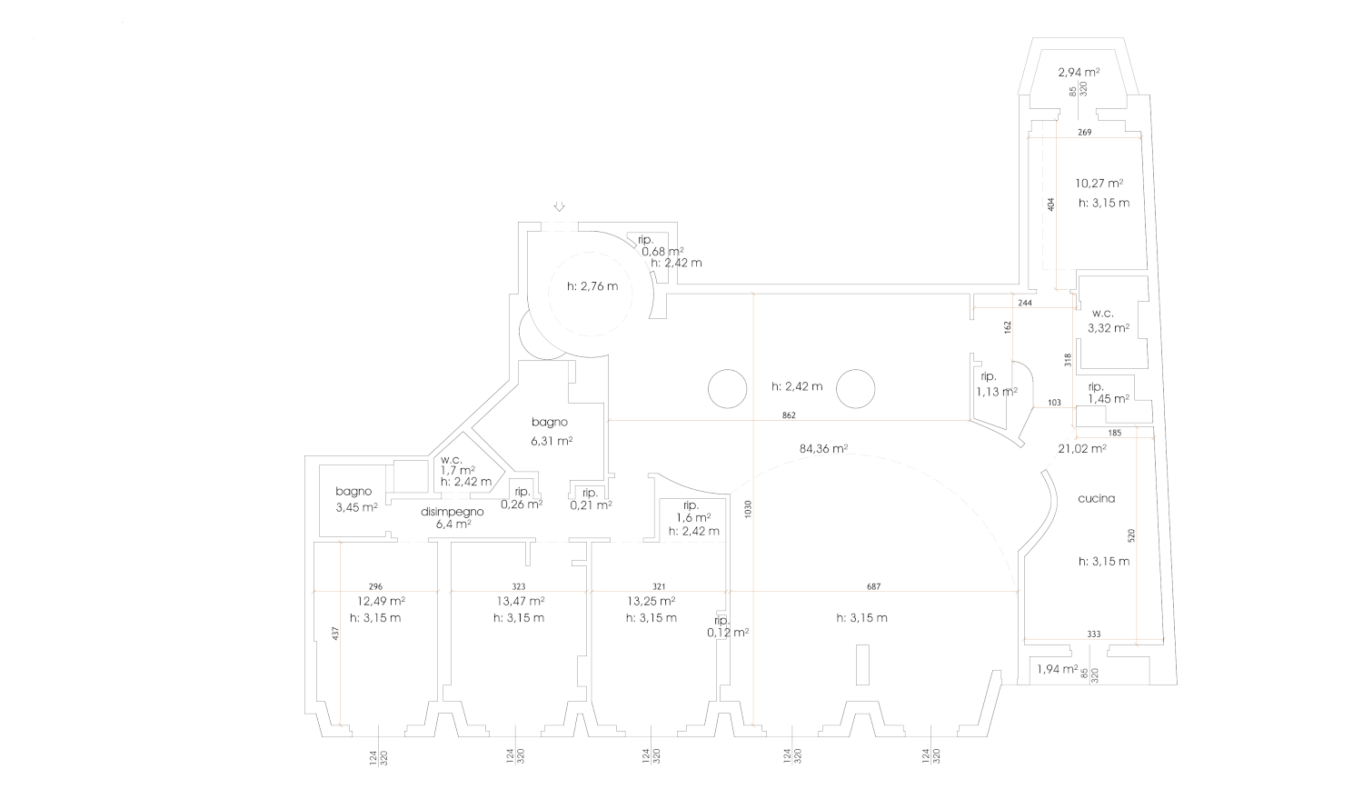The silent property floor 1° m2 215, 5 rooms, multiple services, 2 boxes. Representative entrance, large open plan, eat-in kitchen with balcony, 4 offices, 4 bathrooms, 3 storage rooms/archives. Further balcony.