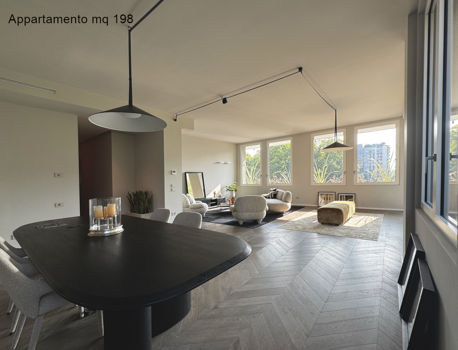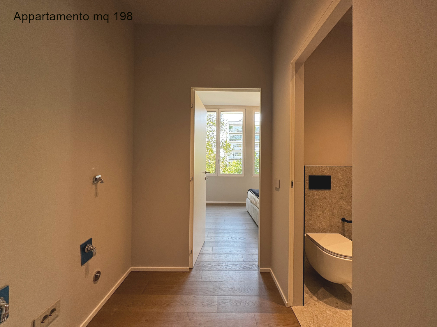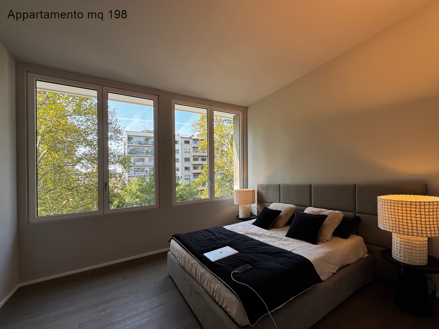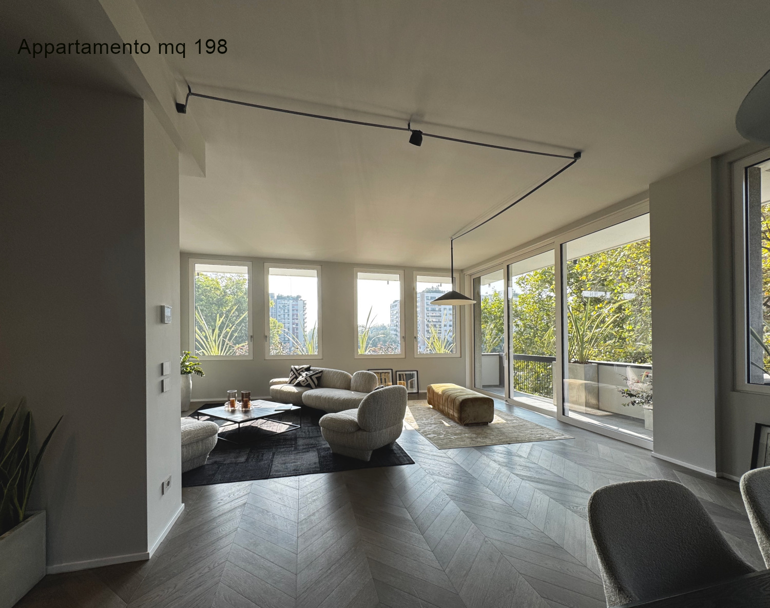Mq 198: ingresso, ampio soggiorno, cucina a vista, 3 camere matrimoniali, cameretta, 3 bagni. Balcone.Richiesta € 2.600.000.Possibilità box € 150.000.