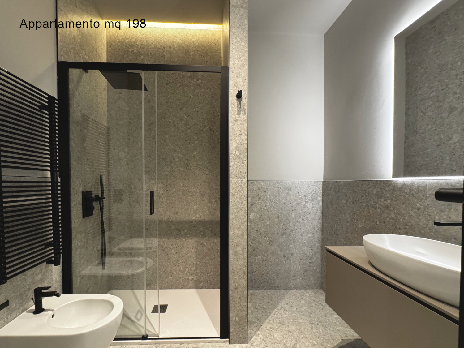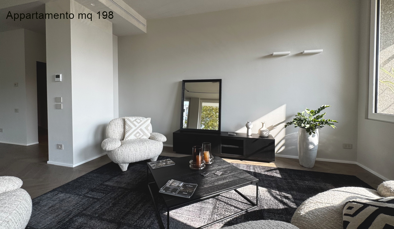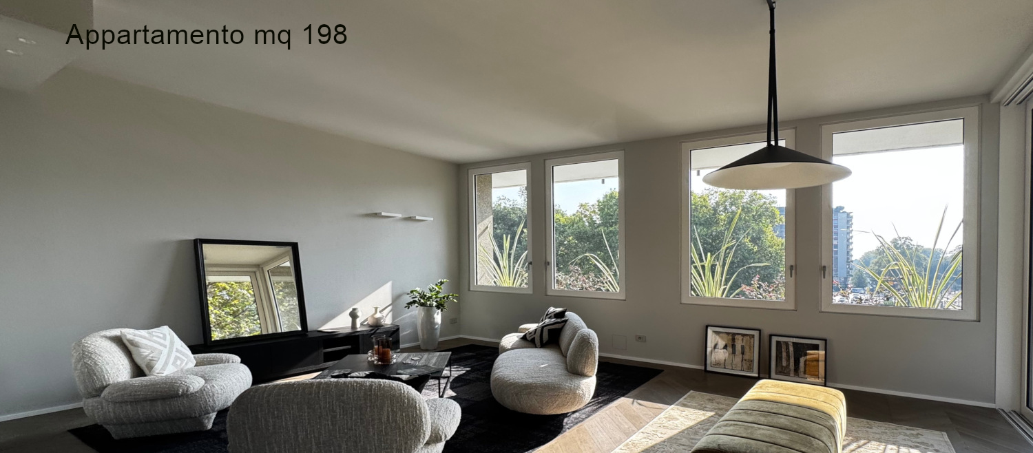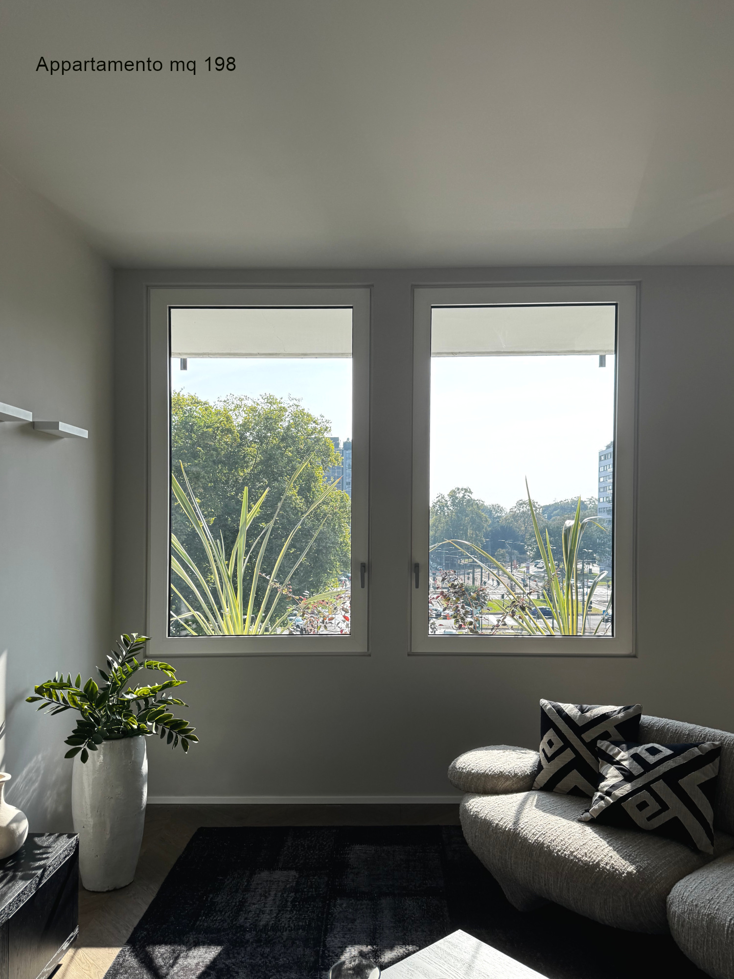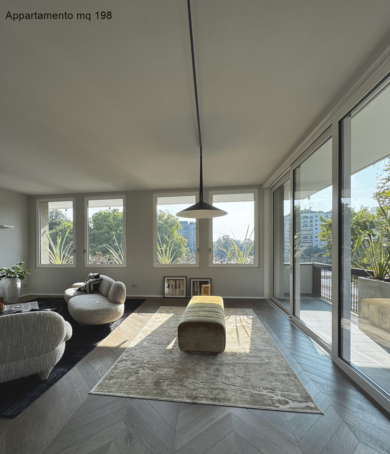 Mq 198: ingresso, ampio soggiorno, cucina a vista, 3 camere matrimoniali, cameretta, 3 bagni. Balcone.Richiesta € 2.600.000.Possibilità box € 150.000.