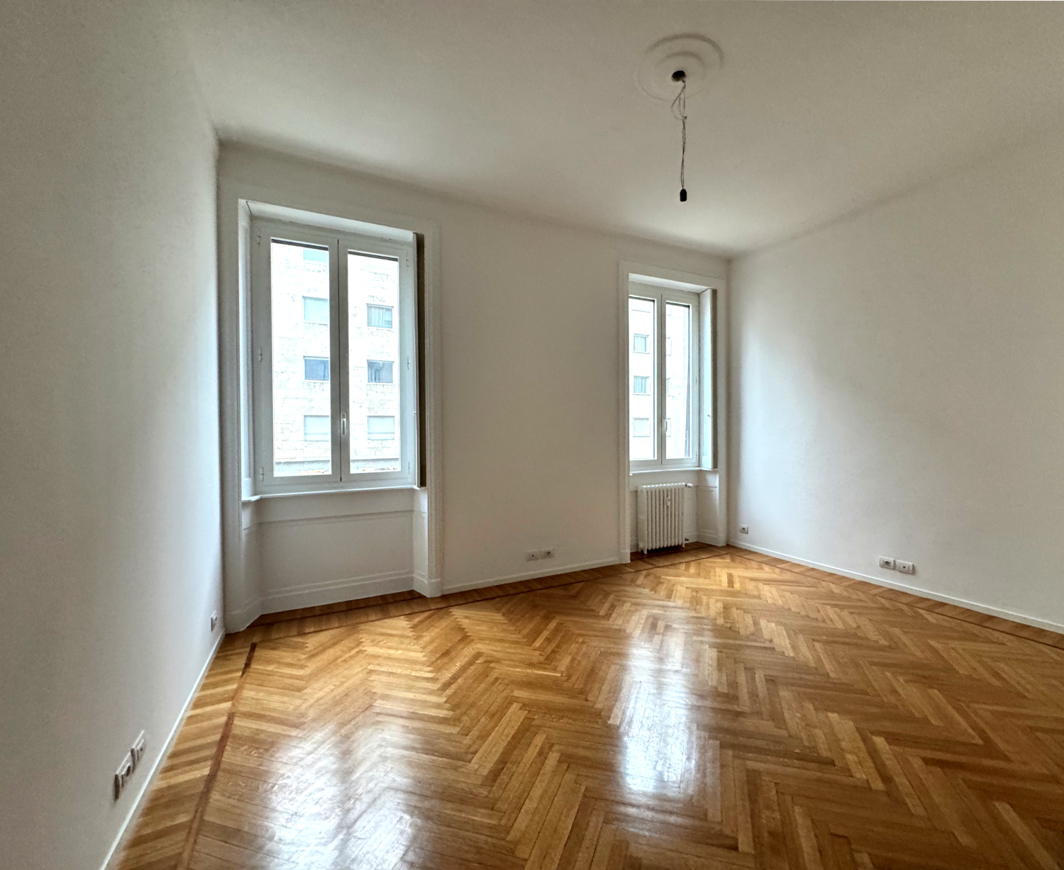 Piazza Santa Maria Beltrade. In elegante stabile d’epoca in ottime condizioni, con facciata raffinata e balconi in pietra, prestigioso e luminoso ufficio piano 3° mq. 512.