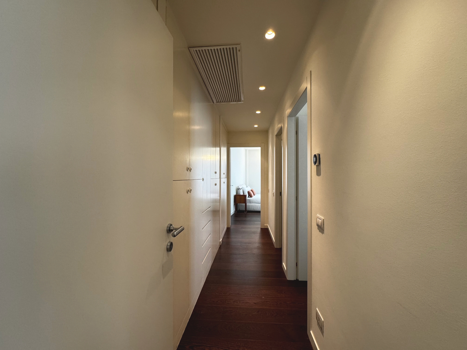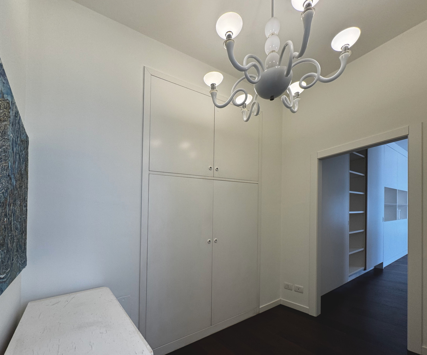 In stabile signorile e ben curato con portineria intera giornata, appartamento di grande fascino piano 4°, mq 130. Distribuzione degli spazi razionale ed elegante. Doppio ingresso che introduce a una ampia zona living, luminosa e accogliente, affiancata dalla cucina abitabile. La zona notte è composta da una prima camera matrimoniale, bagno, master room con balcone, cabina armadio e bagno en suite. Ripostiglio. Arredamento alto standing. Cantina. Contratto transitorio 12/18 mesi. Canone annuo 36.000 (canone mensile 3.000) + spese annue € 7.000 ca (spese mensili € 580 ca). Contratto anche a società canone annuo € 42.000 (canone mensile € 3.500). Possibilità box con canone a parte. Classe energetica F.
