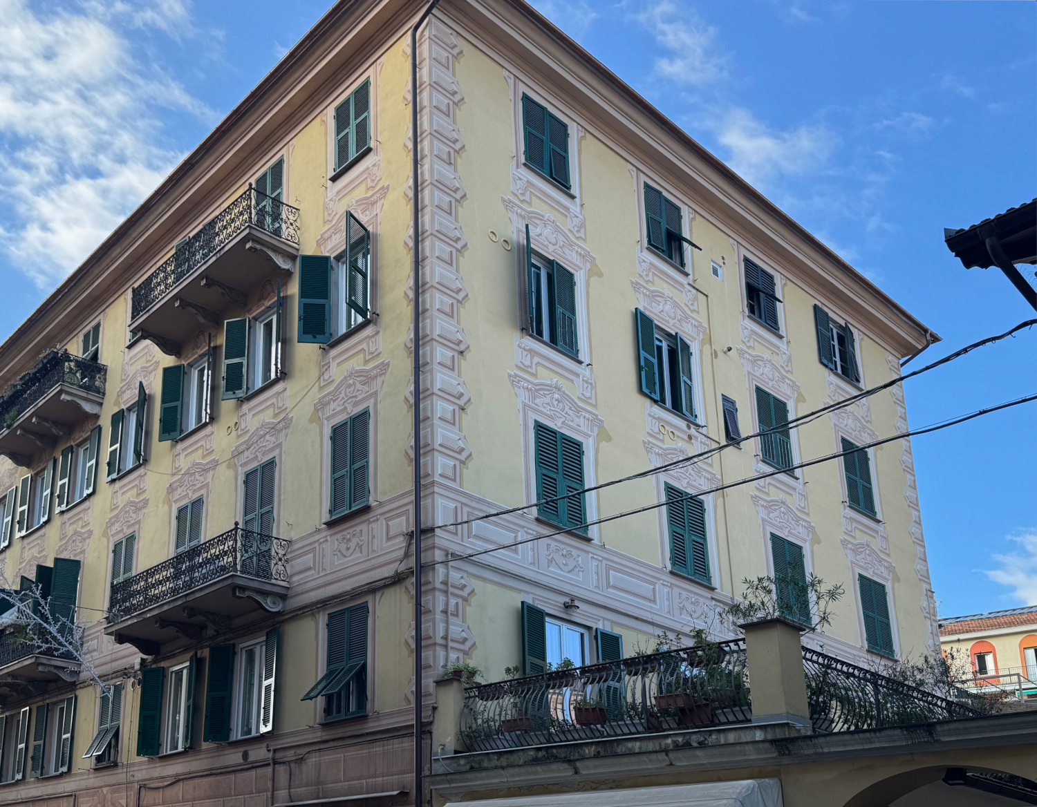 Rapallo – Zona Corso Italia. Nel cuore del centro storico di Rapallo, in zona esclusiva tra la stazione e la cattedrale a pochi passi dal mare, in palazzina storica dei primi del ‘900 ristrutturata con pregiate parti comuni affrescate, dettagli architettonici originali e ascensore, luminoso appartamento piano 4° mq. 90, con ottima vista aperta.